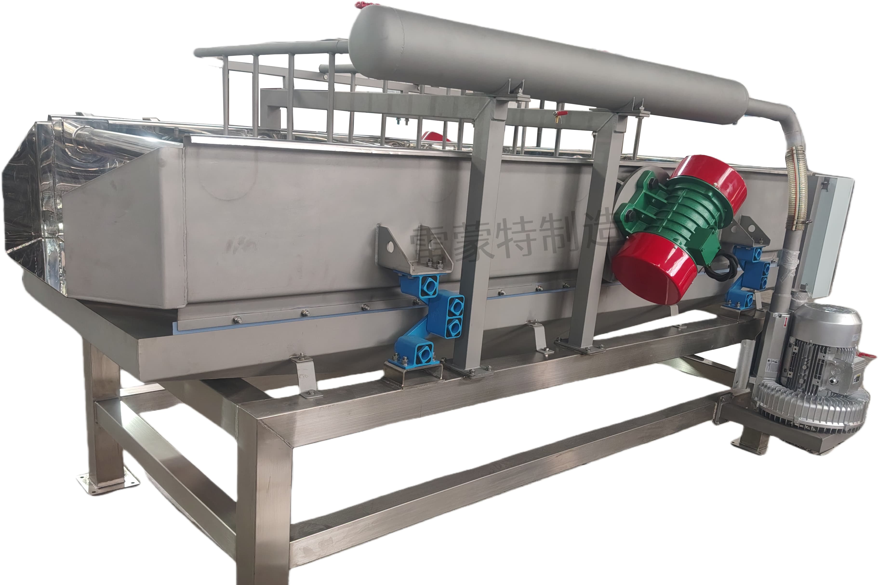 沥水筛配备有旋涡风泵,在沥水的同时对沥水物料有一个吹干的作用,风泵出风风温为常温,可有效保护物料本身的色泽和品质。特别适用于..后的高低温肉制品、蔬菜制品等袋装产品的干燥工作。大大缩短贴标、装箱的准备工作,适宜流水线作业,提高企业生产自动化程度。